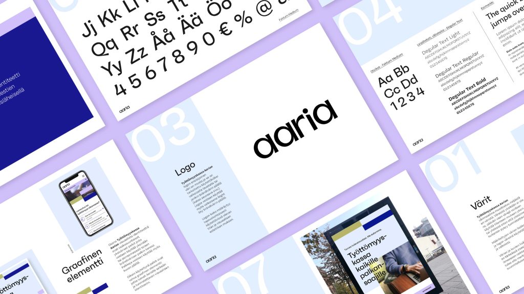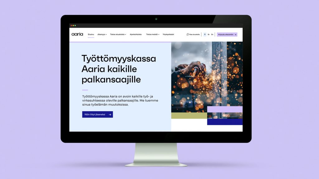 Aarian brändi-identiteetti sekä verkkopalvelut kaipasivat uusimista, kun kolme työttömyyskassaa yhdistyivät. Yhteistyömme myötä syntyi myös uusi nimi, Aaria. Uusi brändi kaipasi luonnollisesti uusitun ilmeen, monikielisen yritysidentiteetin sekä raikkaan verkkosivuston. Lähtöajatuksena oli luoda kohderyhmää palveleva selkeä sisältörakenne sekä moderni käyttöliittymä yhdessä kohdeyleisöä puhuttelevan brändi-identiteetin kera.