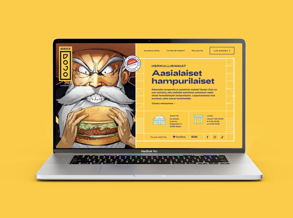 Burger Dojo syntyi palosta luoda jotain uutta, sillä senseit ravintolan takana olivat kartuttaneet jo vuosien ajan kokemusta sushiketju Luckiefun’sista. Tehtävämme oli rakentaa uudelle aasialaisia makuja tarjoilevalle hampurilaisravintolalle vahva ja tunnistettava identiteetti, joka mahdollistaa ravintolakonseptin monistamisen ja laajenemisen. Burger Dojon tavoitteena on kasvaa maanlaajuiseksi franchise-ketjuksi, joka tarjoaa yrittäjille vakaat puitteet: erottuvan brändin, kiistattoman uskottavuuden ja valmiin asiakaskunnan.