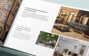 Painettu esite ja muut materiaalit toteutettiin samalla tarkkuudella, jotta ne vastaisivat vaativien kansainvälisten asiakkaiden tarpeita ja olisivat viimeistä yksityiskohtaa myöten vaikuttavia, helppolukuisia ja informatiivisia. Yhteistyössä Don & Brancon kanssa Kasarmikatu 25 on valmiina ottamaan paikkansa yhtenä Helsingin tärkeimmistä liiketoiminnan keskuksista ja nostamaan toimistoratkaisujen rimaa entistä korkeammalle.