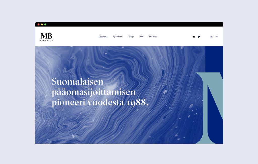 MB Rahastojen entinen ilme ei kuvastanut riittävän hyvin modernin pääomasijoitusyhtiön toimintaa. Don & Branco tarttui toimeen luodakseen uuden identiteetin, joka vastaa paremmin yhtiön uudelleen määriteltyä strategiaa. Uuden identiteetin tehtävä on kertoa, mistä MB Rahastojen toiminnassa on kyse, ja painottaa entistä enemmän henkilökohtaisten kontaktien merkitystä.